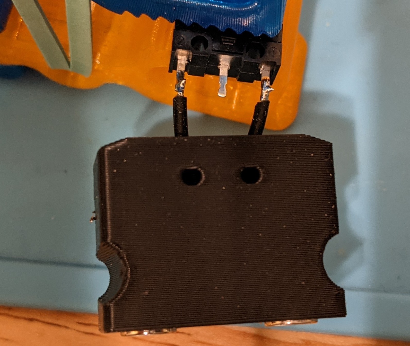 • Solder the other ends of the wires to the outer prongs (NC) of the microswitch. Note the image with the black magprobe is an older version.