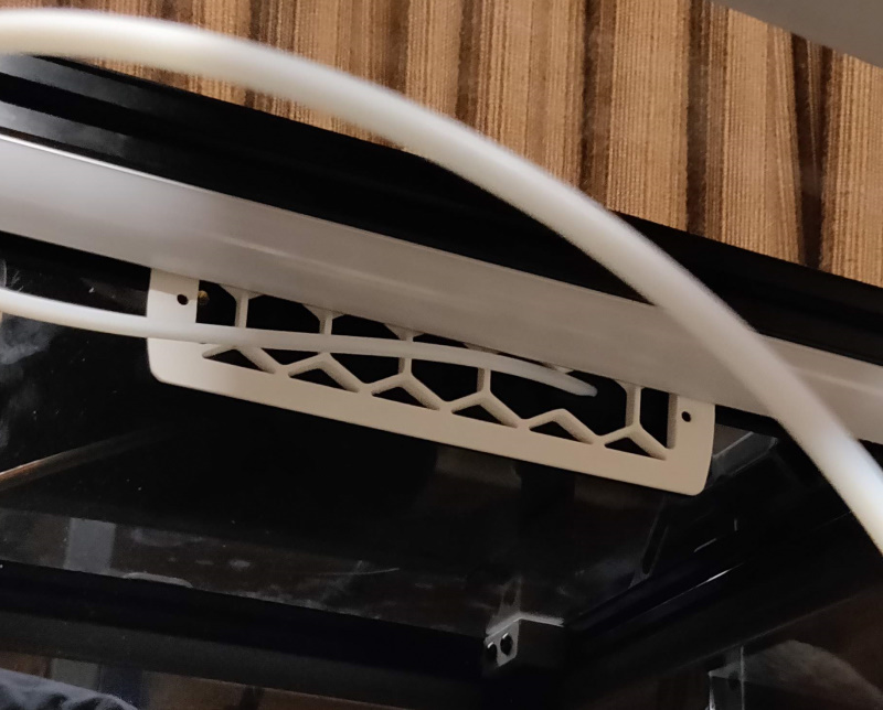 If you choose not to use the exhaust - perhaps you're planning on fitting a nevermore instead. This is a blanking plate with integrated bowden tube route that goes in place of the exhaust filter housing. It makes use of the existing grill with one strut removed (use the stl here or cut out a strut of a grill you already have printed) as I liked the look of it.