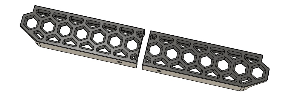 Left and right skirt part with 40 degree chamfers for color change printing. There is an extra hole for tightening the middle M3 screw.
