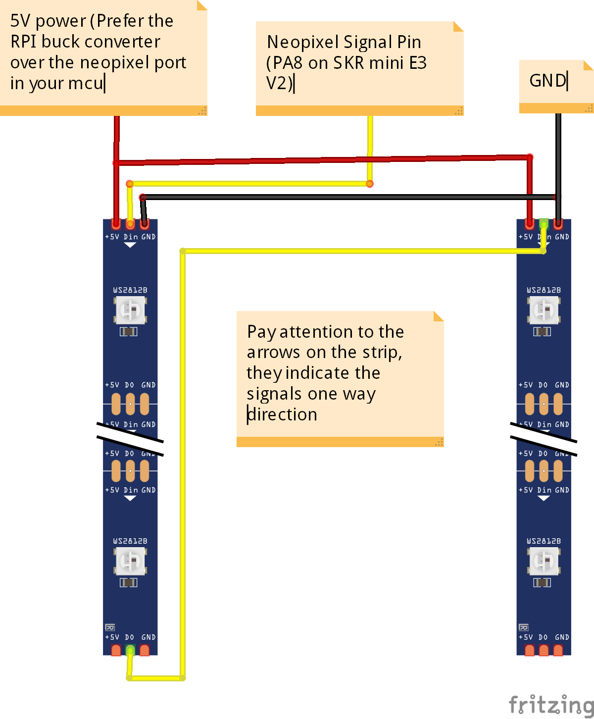 - Solder the signal wire based on the diagram below (There is a hole in the mount to allow the wire to go from the one strip to the other)