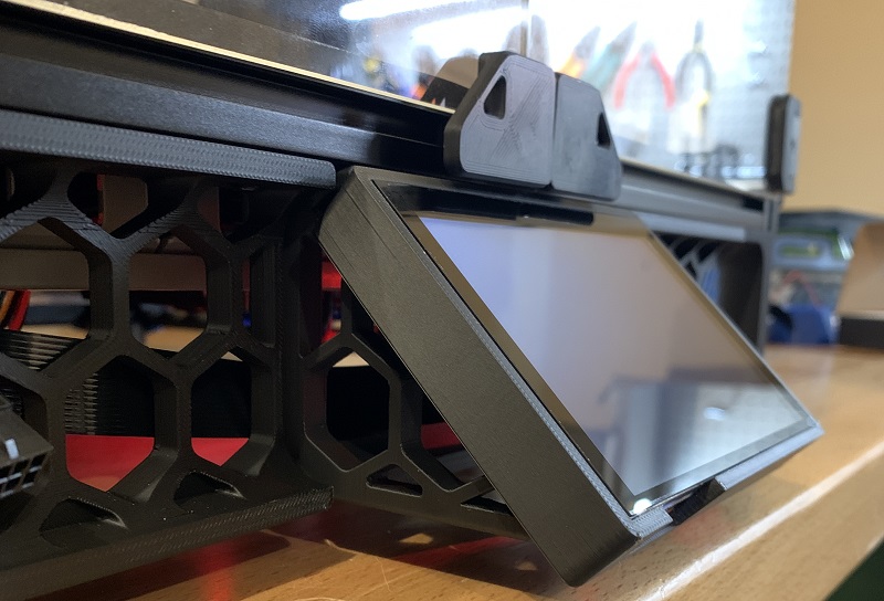 This was tested with a BTT PITFT50 v2, but will likely also work with sttts's 5.5-inch Waveshare mount, since the hole pattern is the same.