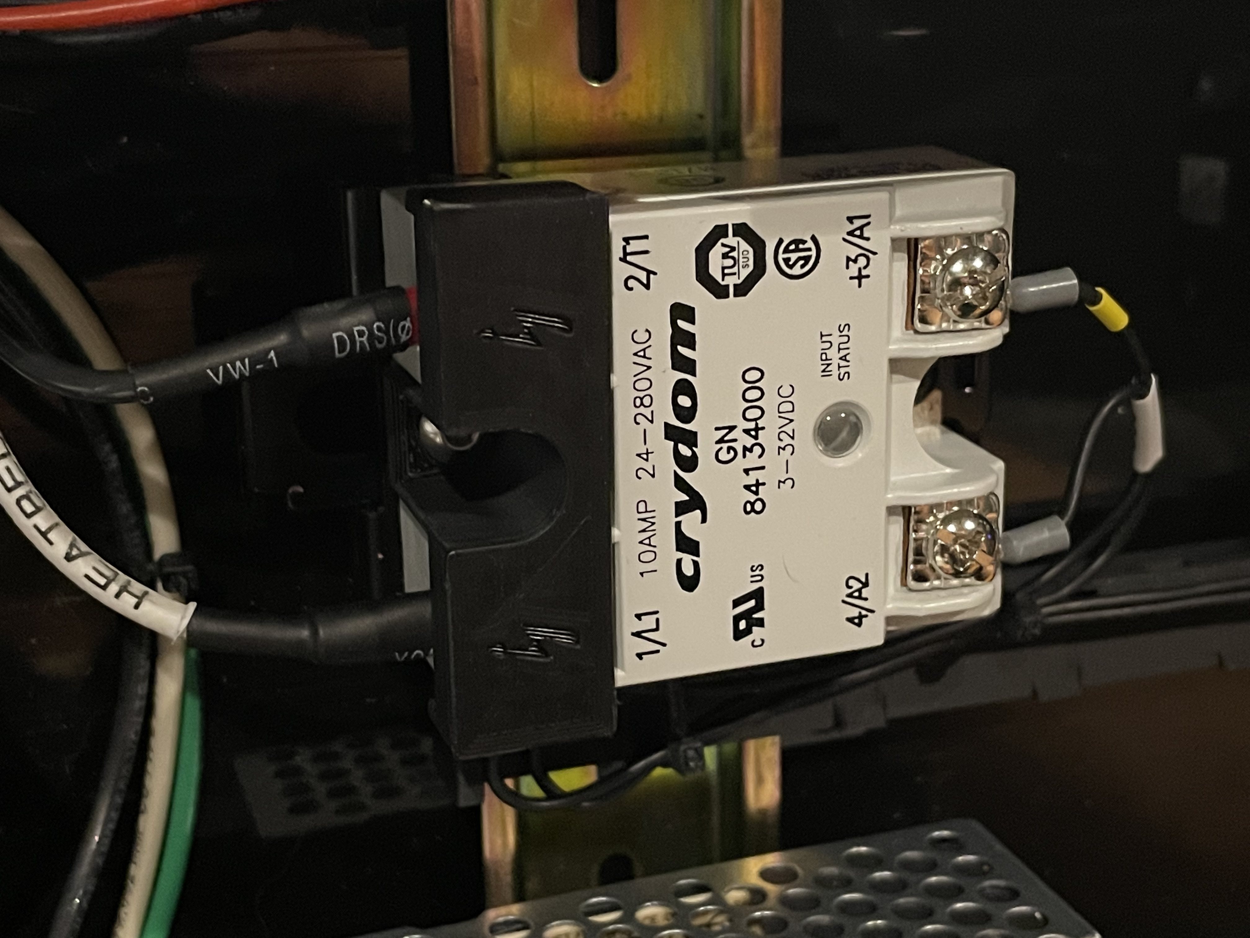 I replaced the SSR on my build with a Crydom GN series SSR. The model I received didn't have the terminal cover, so I created a simple cover that is secured with the mounting screw on the SSR, and helps prevent accidental touching of the high voltage terminals.