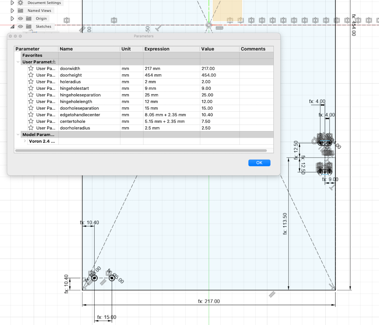 To that end, the holes for the handles are slightly larger and will likely require either a washer or button head screws. This is intentional to allow you to be able to move those around by a few mm. I also found that the door latches sat a little too far out for the standard acrylic + 1mm tape, so I modifed the latches to sit back a little more.