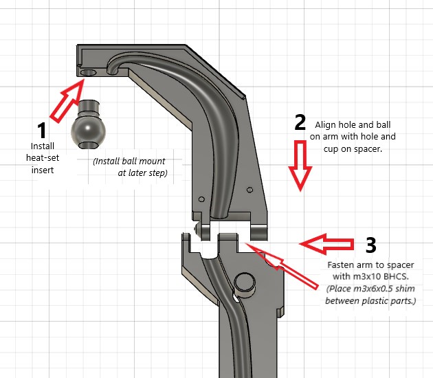 B. Prepare the camera arm and attach to right spacer.