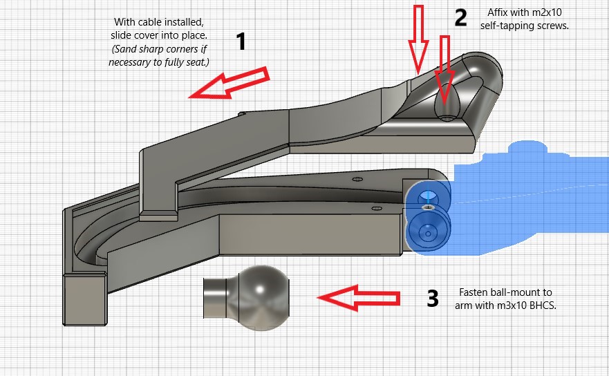 D. Install the arm cover and ball mount.