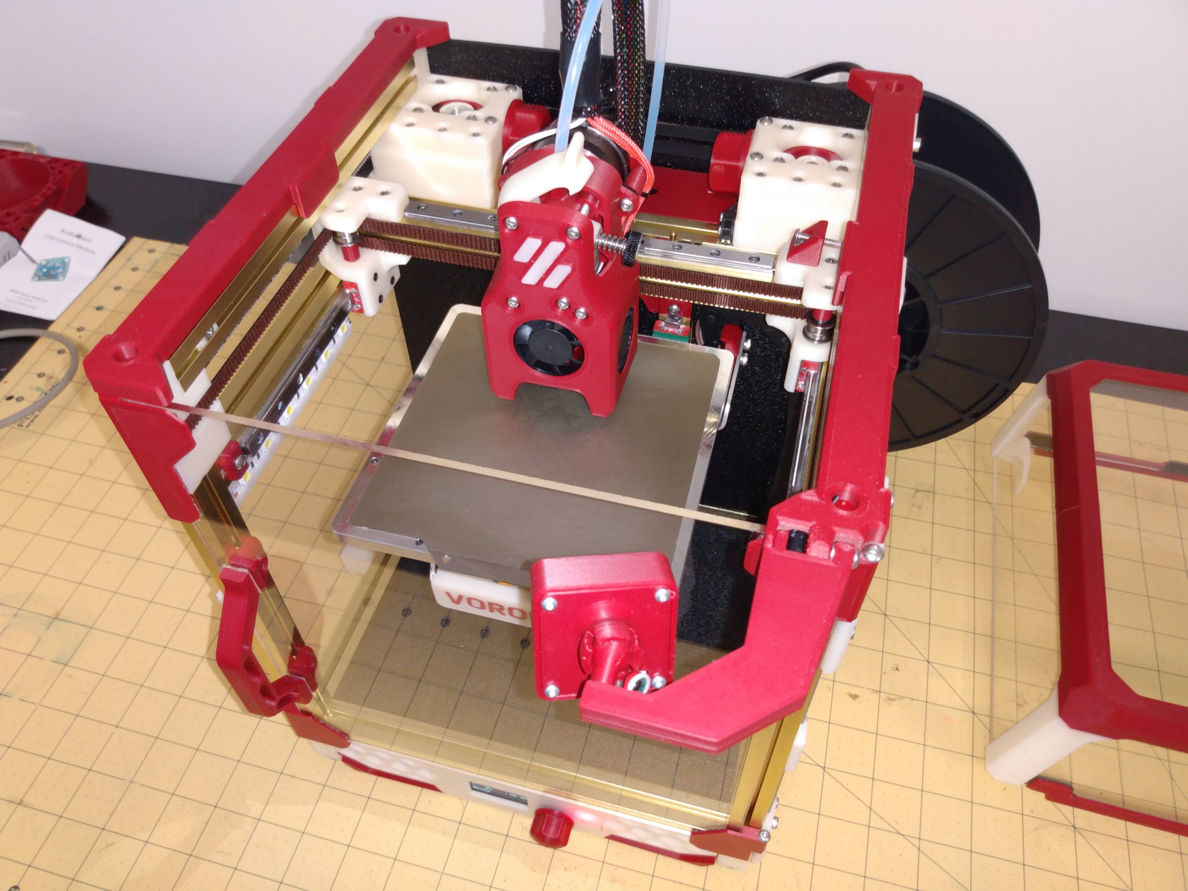 The parts for this mod should be printed with standard Voron quality settings. It is assumed that they will be printed on a Voron V0 or V0.1. All parts in the top-level STLs folder can be printed on the 120x120 bed. The Spacer parts have been split from the CAD in order to accomodate this. They will still need to be rotated 45 degrees to fit. (It is suggested to set the infill angle to 90 degrees to print the rotated parts.)