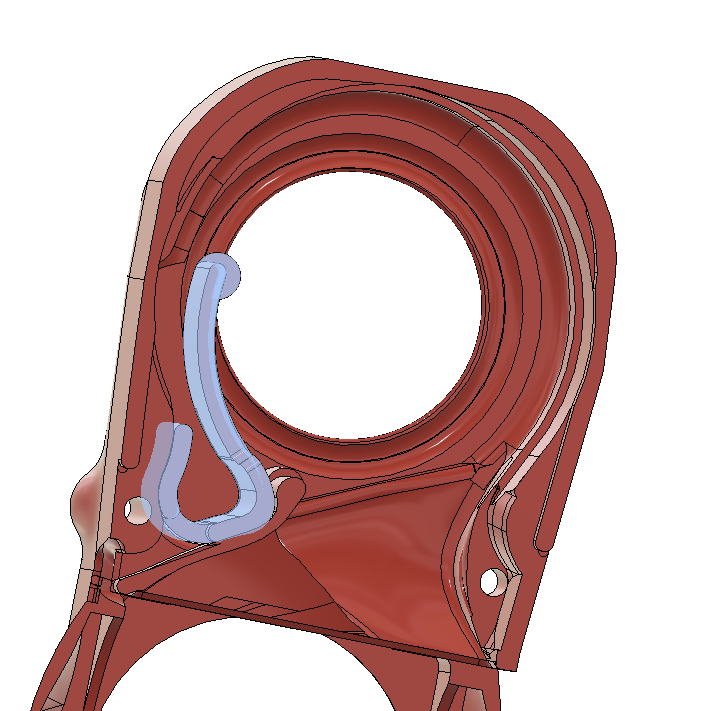 Once you have your shims in the right spots, remove the fan and install the printed leaf spring (AB-BN-28_spring) into fan front. The little circle tab should be cut off, it's an integral print support only.