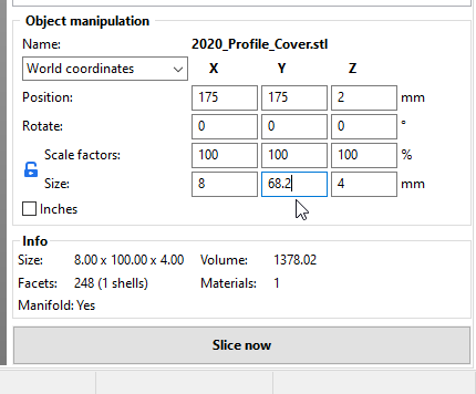 For adjusting the length of the profiles you can scale the *.stl file in your slicer in y-direction after import and before positioning (rotating/placement) on your print bed. Please find the following example on how to do so for SuperSlicer: