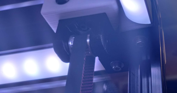 An integrated led mount that sneaks the cables behind the z idlers. This part is all you need to hold the led string in place and hide away those cables.