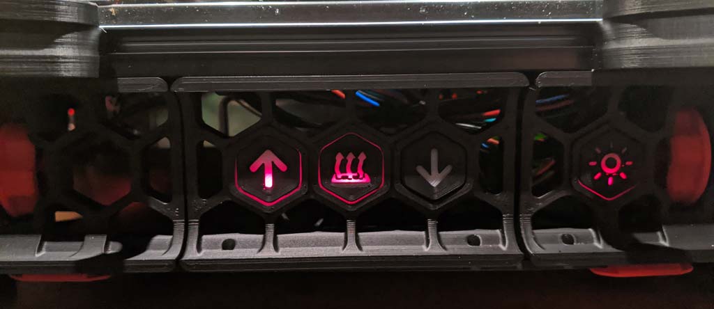 Build your owns buttons to execute gcode without a webinterface or printer display. I don't have a display on my small Voron (250³) and I only need 4 types of action in front of the printer so I wanted to add some buttons on my printer. This mod is my interpretation for buttons in the skirt.