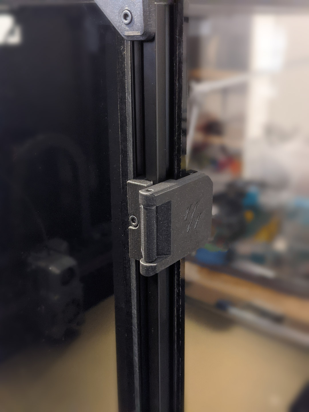 During development and testing of these I struggled with tape being sufficient with my first version of these. So went back and designed these to use hardware and remove tape from the equation. Hardware mount was heavily influenced by Randell other door hinge mod that uses hardware. The handles in this mod are a remixed version of Randell's to adjust for the altered latch developed for this setup. The latch in the mod gives as much room as possible vertically if panels are slightly too tall.