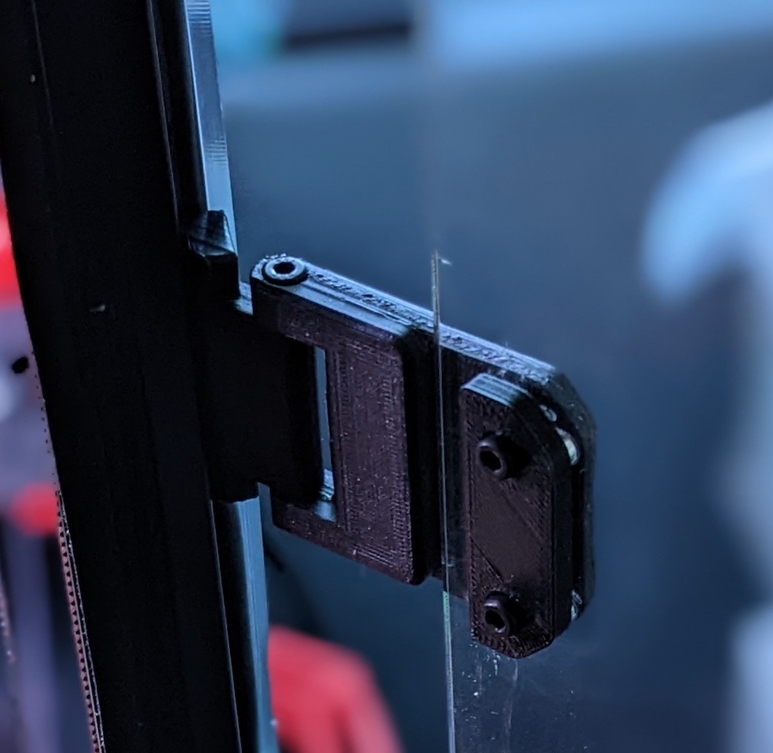 To that end, the holes for the handles are slightly larger and will likely require either a washer or button head screws. This is intentional to allow you to be able to move those around by a few mm. I also found that the door latches sat a little too far out for the standard acrylic + 1mm tape, so I modifed the latches to sit back a little more.