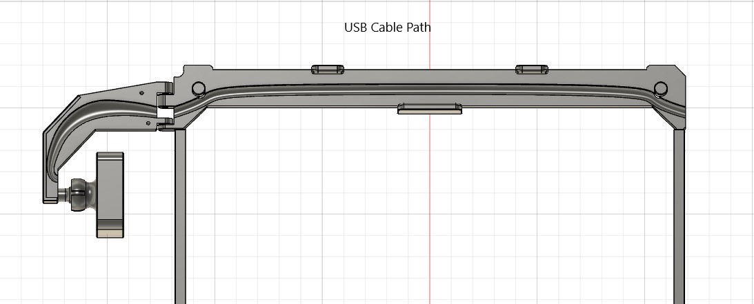 Plug the USB cable into the camera and attach camera base to ball mount. (Note: If the base seems too loose, you may want to scale up the ball mount a bit and reprint. A little loose is OK, because the camera will probably be tilted all the way down for best image position.)