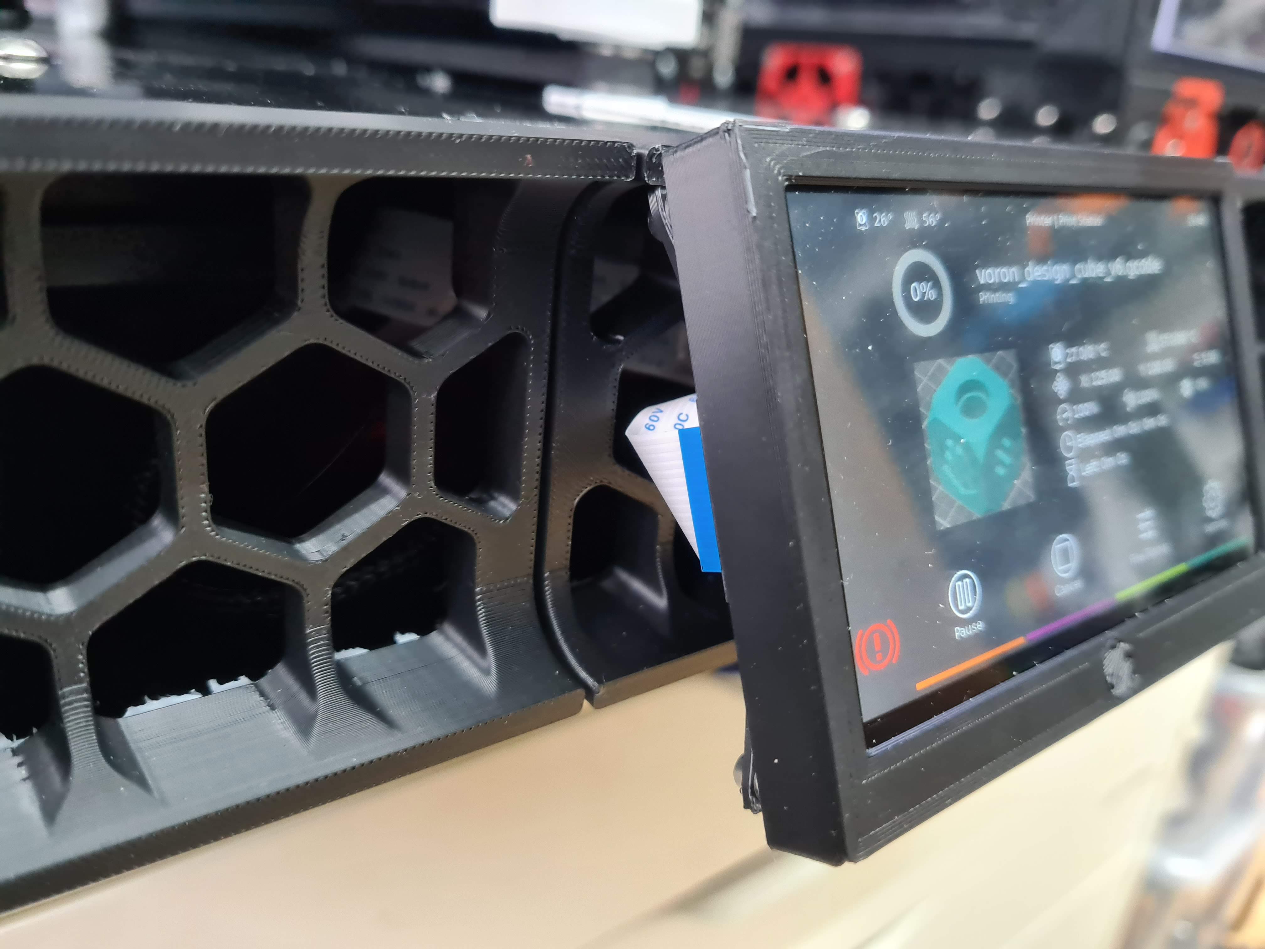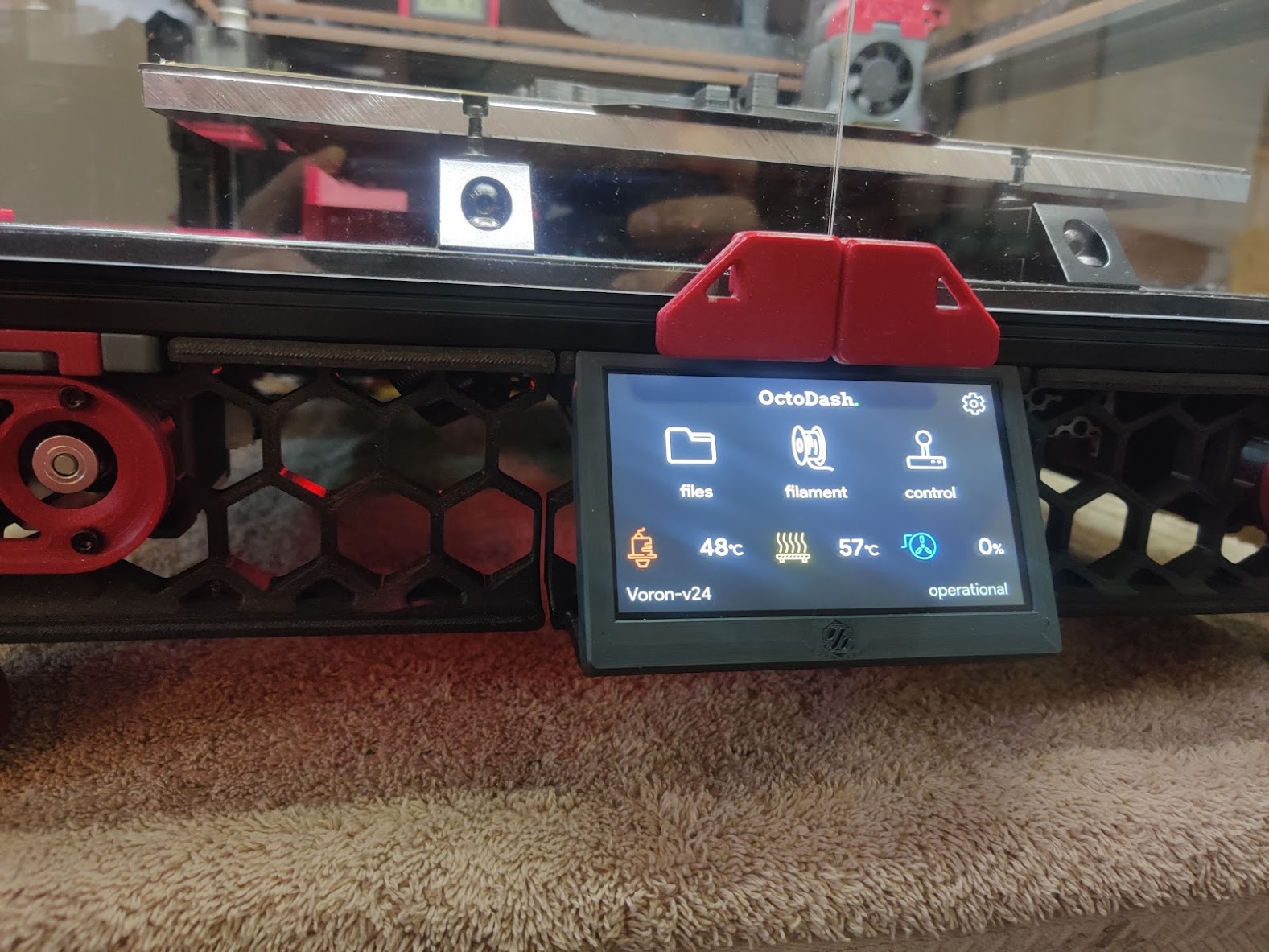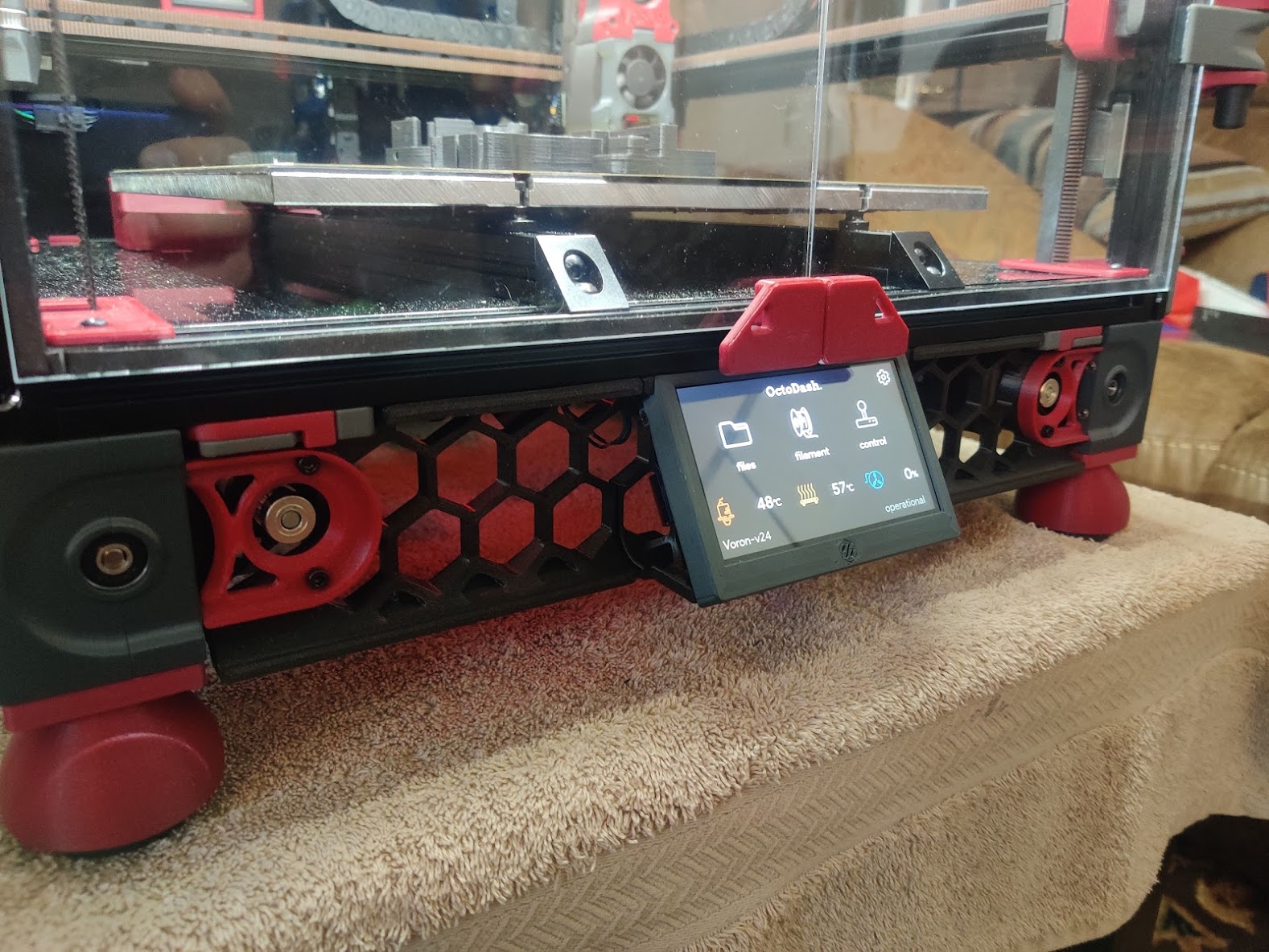 This mod mounts a Waveshare 4.3inch Capacitive Touch Display purchased from Amazon. The screen is oriented at a 60 degree angle keeping the height the same as a standard skirt.