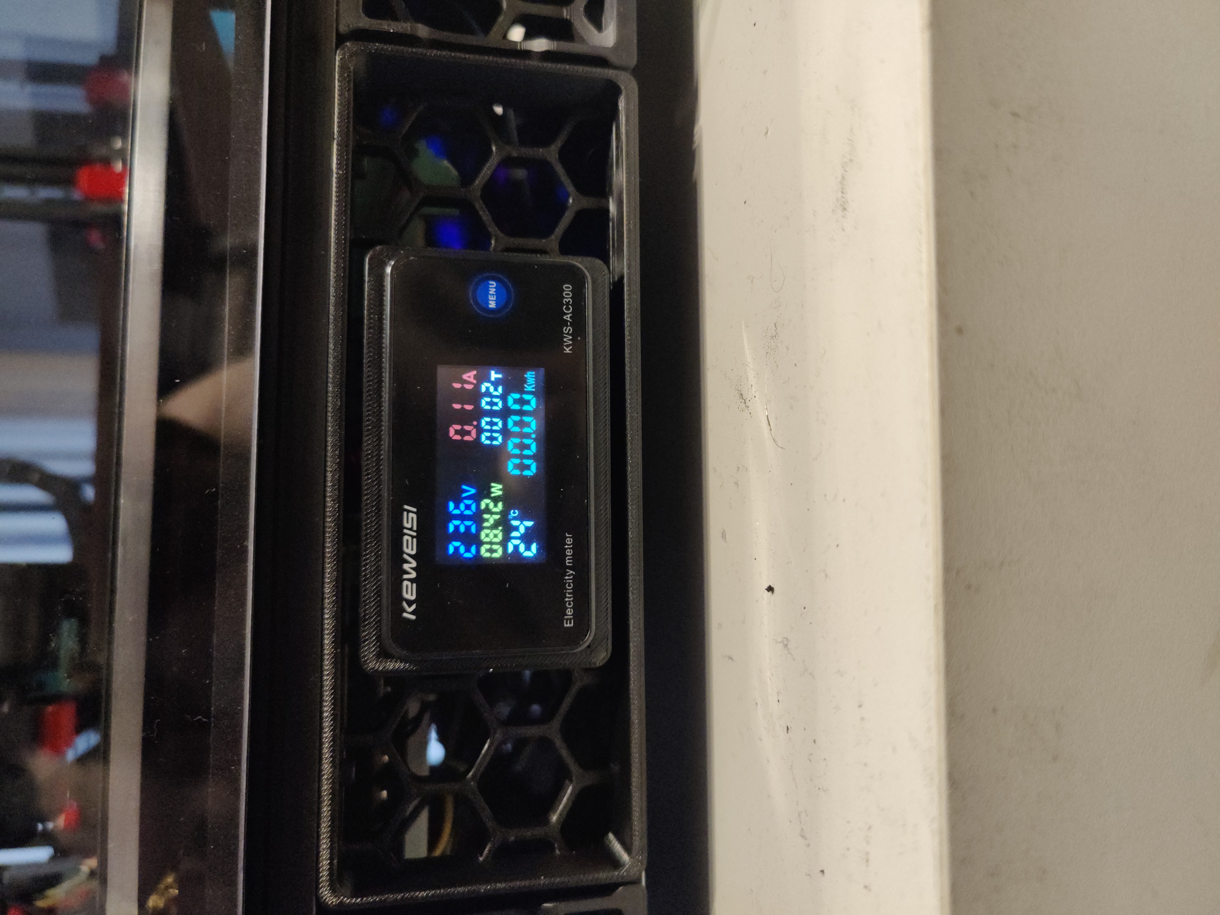 - Slide the torus over the mains input, before you split it off to power the PSUs/Bed. This way you measure the entire printer, not just one branch of the split.
